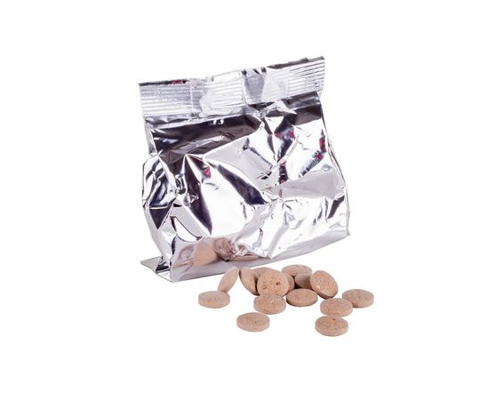 В 1 таблетке содержится:Протеина не менее 29 %, золы не более 15 %, жира не менее 1,5 %, кальция не менее 0,4 %, фосфора не менее 0,5 % (на сухое вещество), влаги не более 9 %, жирных кислот класса Омега-3 не менее 1,5 мг, таурина 2 мг