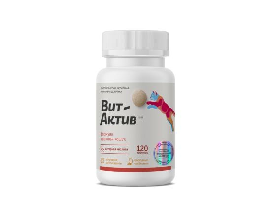 Вит-Актив - витаминно-минеральный комплекс для обеспечения физиологических потребностей кошек в витаминах, аминокислотах и минеральных веществах, обогащения рациона природными антиоксидантами и пребиотиками.