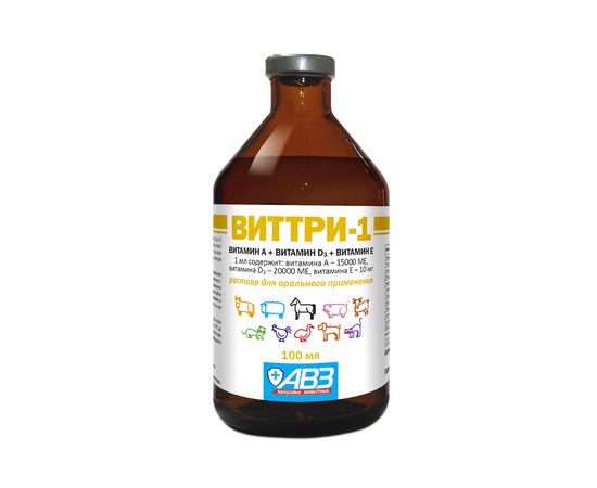 Раствор витаминов Виттри-1 (или Виттри рецептура № 1) предназначен для применения животным внутрь. В 1 мл Виттри-1 содержится 15000 МЕ витамина А, 20000 МЕ витамина Д3 и 10 мг витамина Е. Виттри-1 представляет собой прозрачную или слегка мутную маслянистую жидкость от светло-желтого до красно-коричневого цвета с запахом, свойственным растительному маслу. Расфасовывают по 100 мл во флаконы из темного стекла.