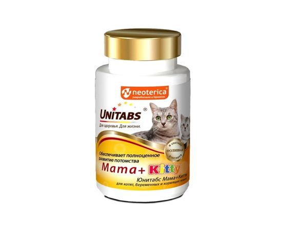 Unitabs Mama+Kitty — это витаминно-минеральный комплекс для котят всех пород, а также беременных и кормящих кошек, который содержит все необходимые витамины, макро- и микроэлементы и фолиевую кислоту (витамин В9) для полноценного развития. Молочный вкус и запах витаминок придутся по душе привередливым кошкам.