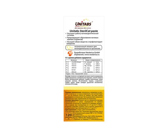 ЮНИТАБС Паста витаминно-минеральная SterilCat с Q10 для кошек, 120 мл