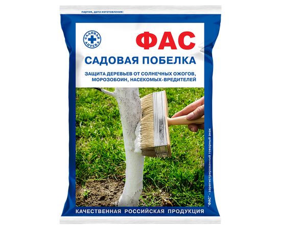 Побелка садовая ФАС состоит только из экологически чистых природных компонентов и применяется для защиты стволов деревьев, деревянных конструкций парников и теплиц, а также хозяйственных построёк1 хлевов, птичников и туалетов.